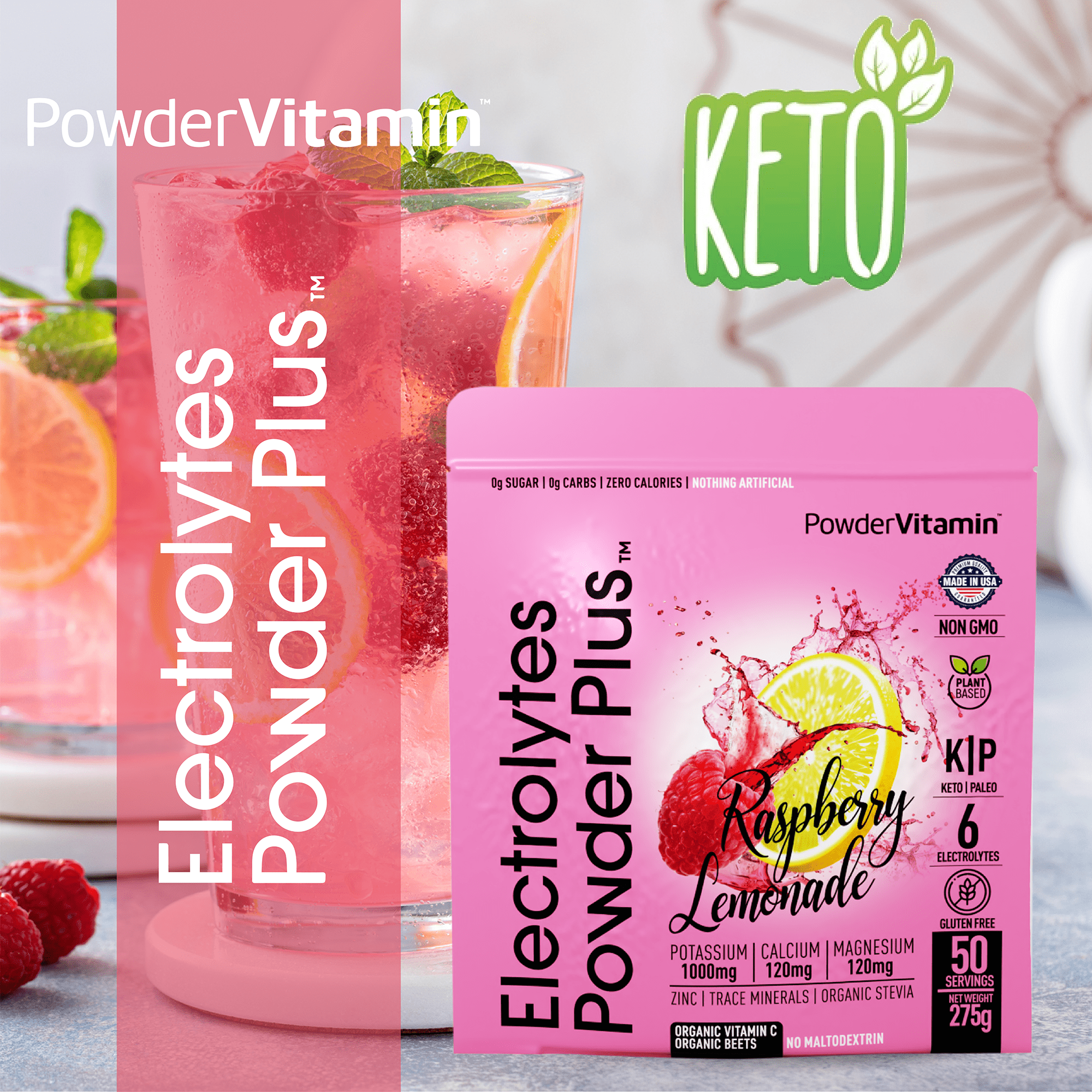 Additionally, our flavored electrolyte powder is keto-friendly, lab-tested, and made in the United States under Good Manufacturing Practices (GMP) standards.