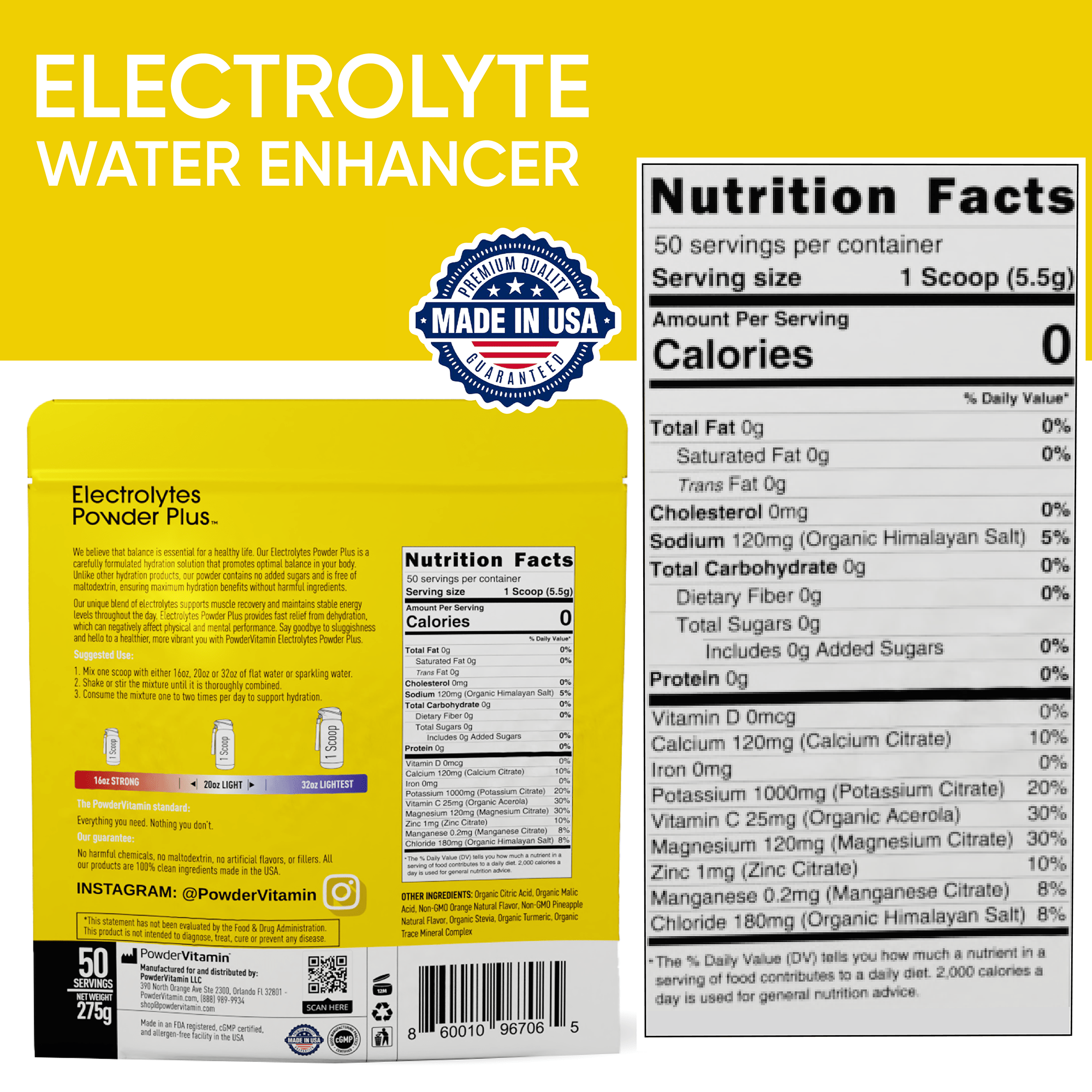 Electrolytes Powder Plus™ is lab-tested and manufactured in the USA according to Good Manufacturing Practices to ensure safety, purity, and potency. We are also based in America and adhere to strict quality standards for all our products.
