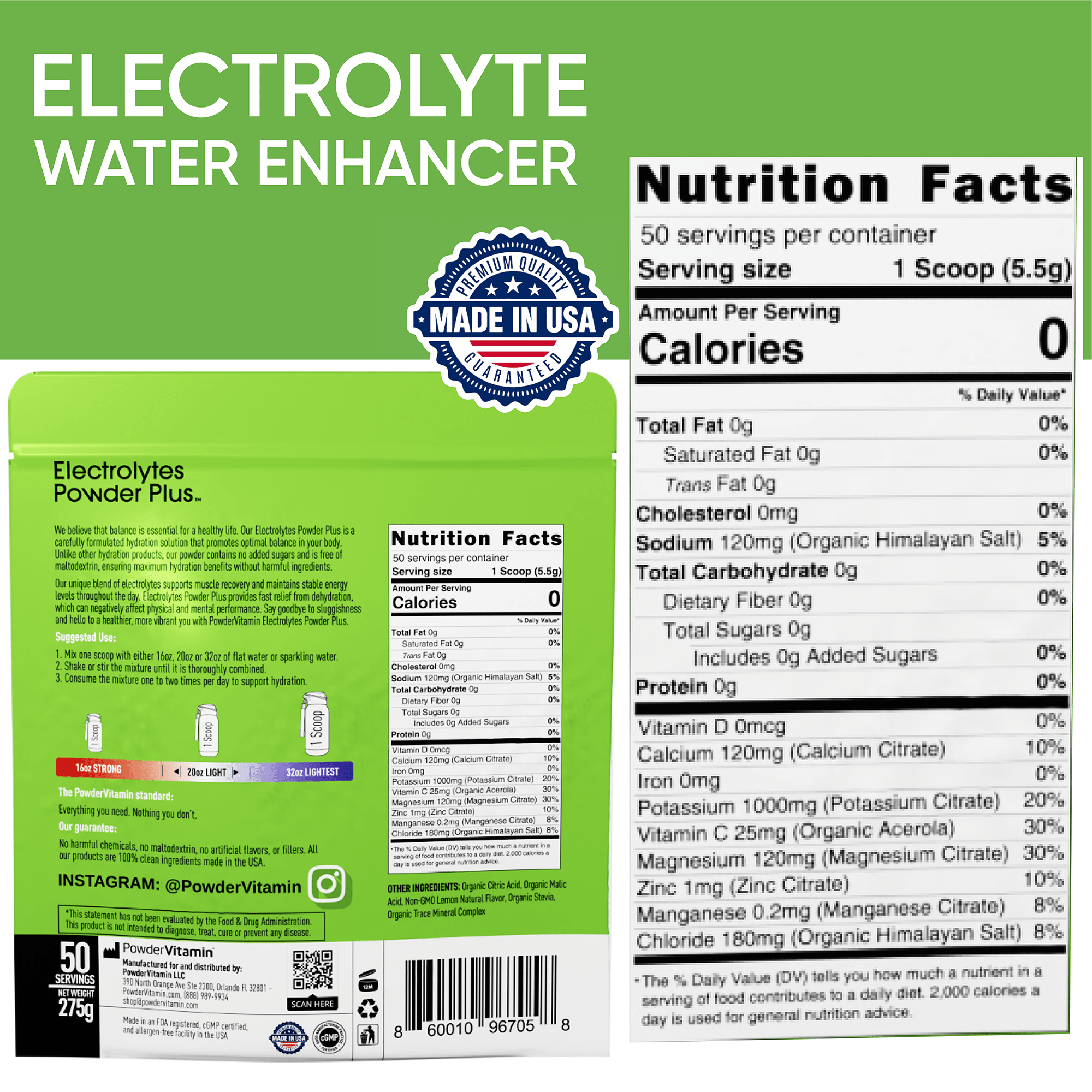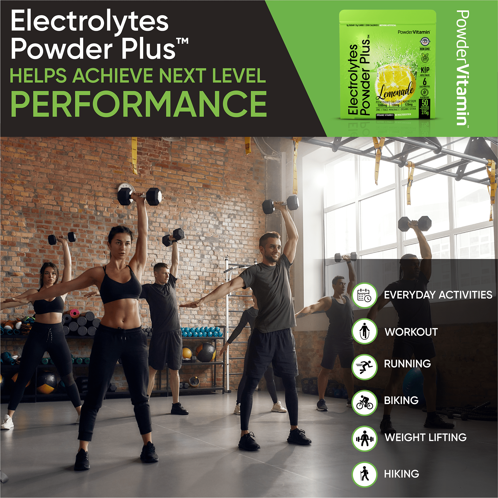 Keep Yourself Hydrated: Without added calories. PowderVitamin Sugar-Free Electrolyte Powder Plus aids in per workout & post workout muscle recovery with potassium and essential mineral salts.