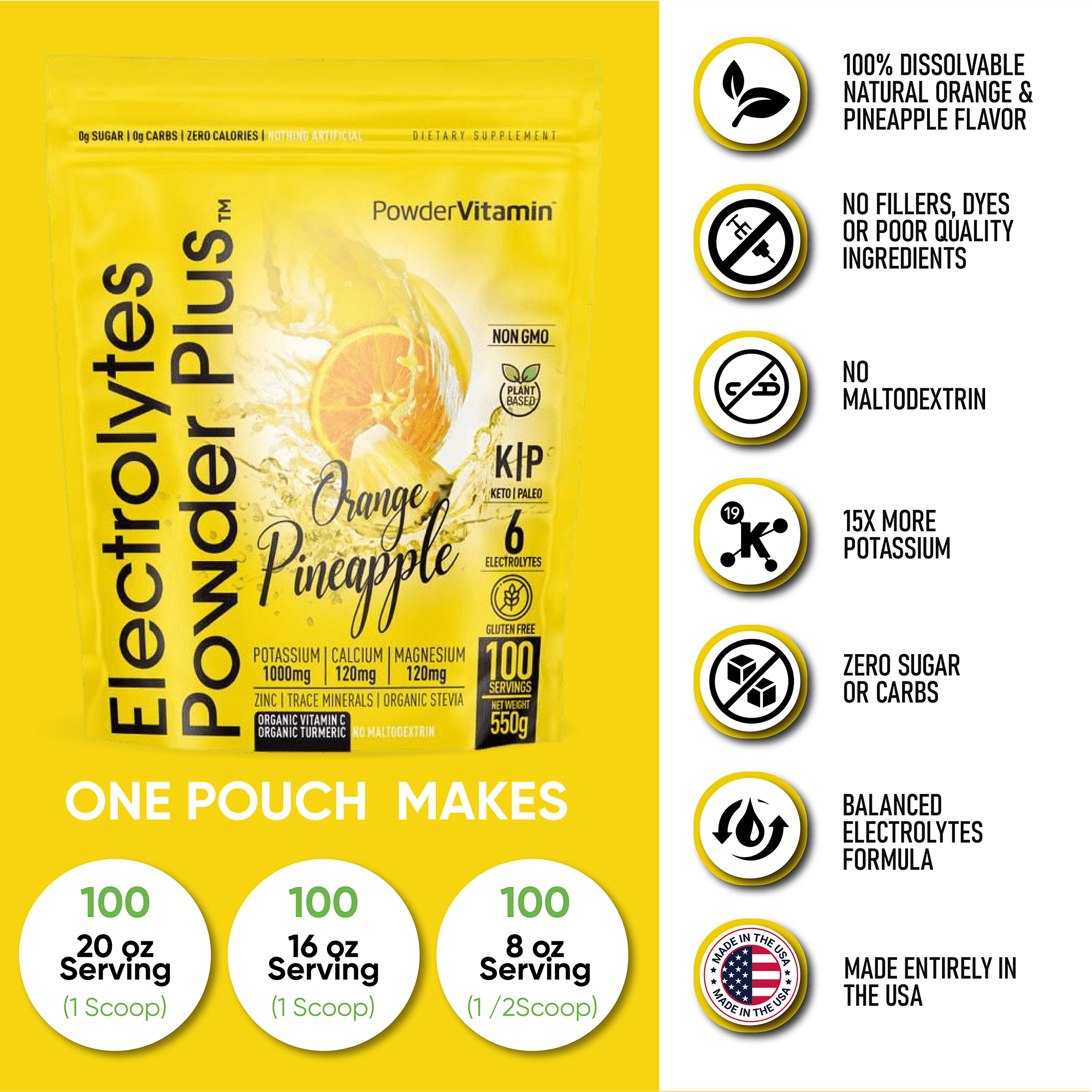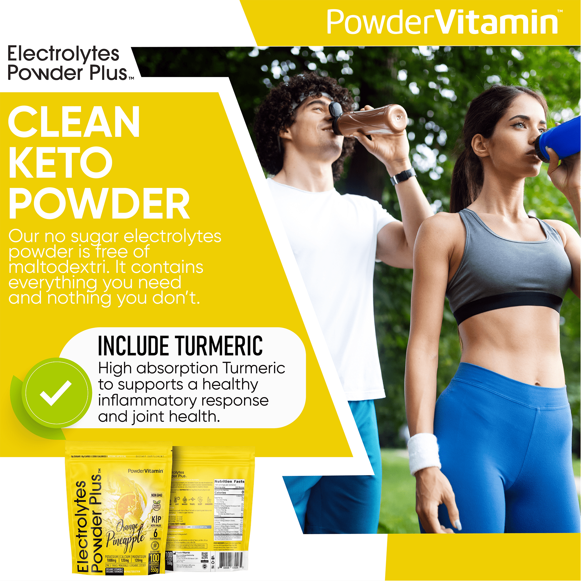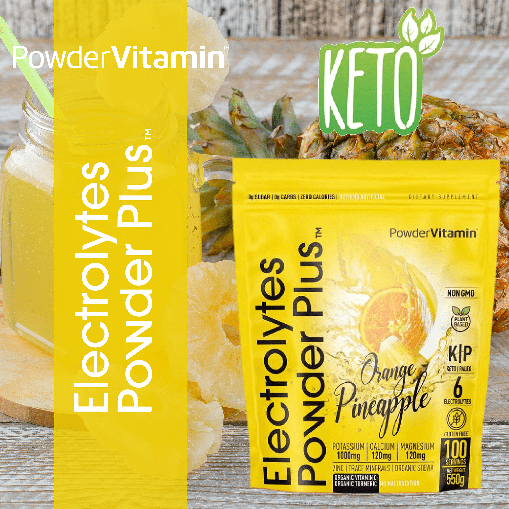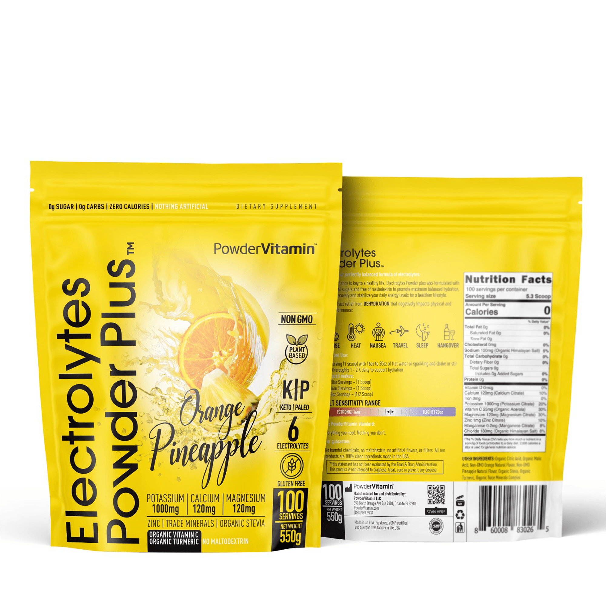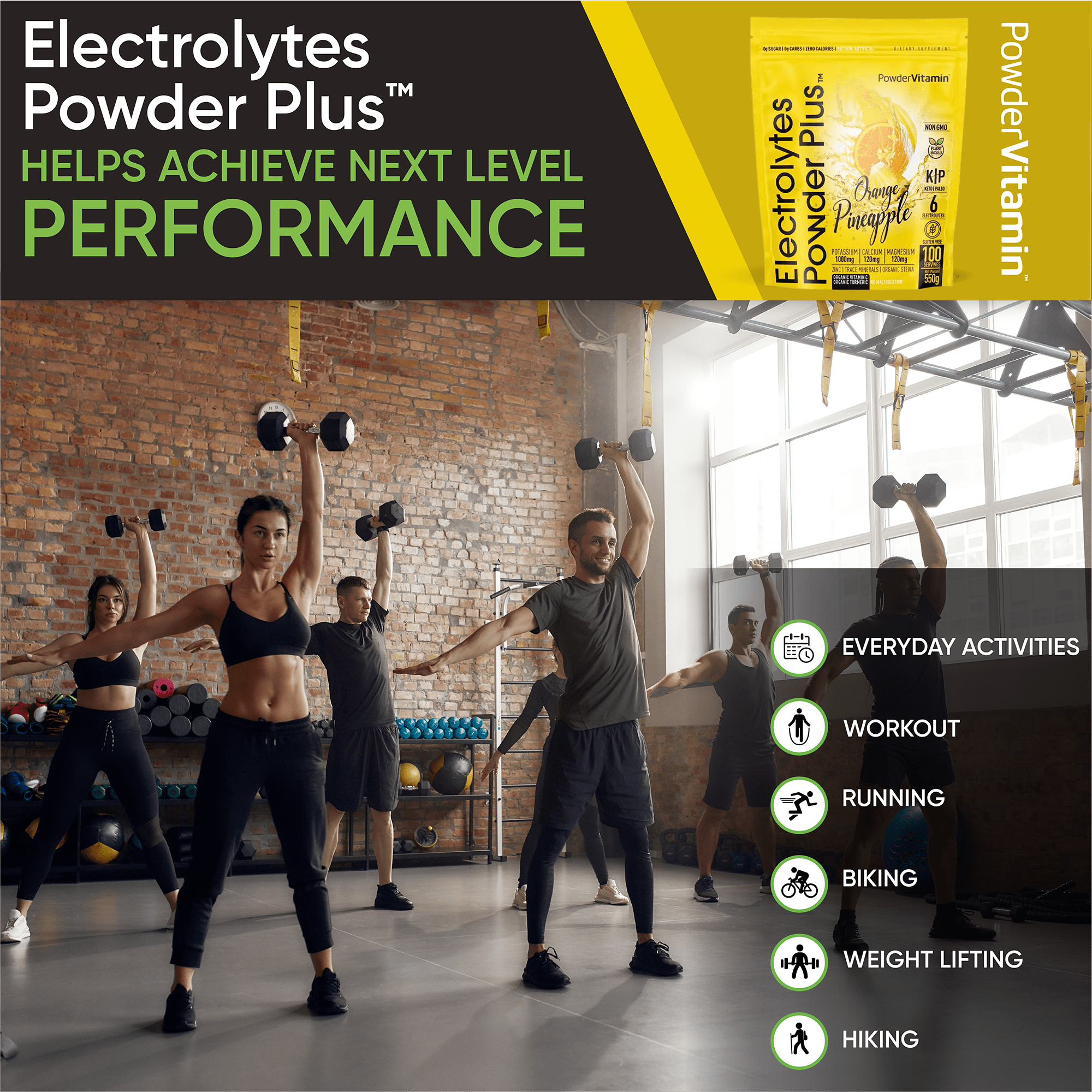PowderVitamin Electrolytes Powder Plus™ is an advanced, balanced hydration drink with 6 essential electrolytes and trace minerals. Optimal hydration requires a good balance of electrolytes in the body. Essential electrolytes help you perform your best. The PowderVitamin Electrolytes Powder Plus™ formulation was created to support healthy hydration with real fruit flavors, plant-based colors, organic stevia leaf for sweetness. PowderVitamin Electrolytes Powder Plus™ has no sugar, calories or carbs so it’s compatible with any dietary plan.