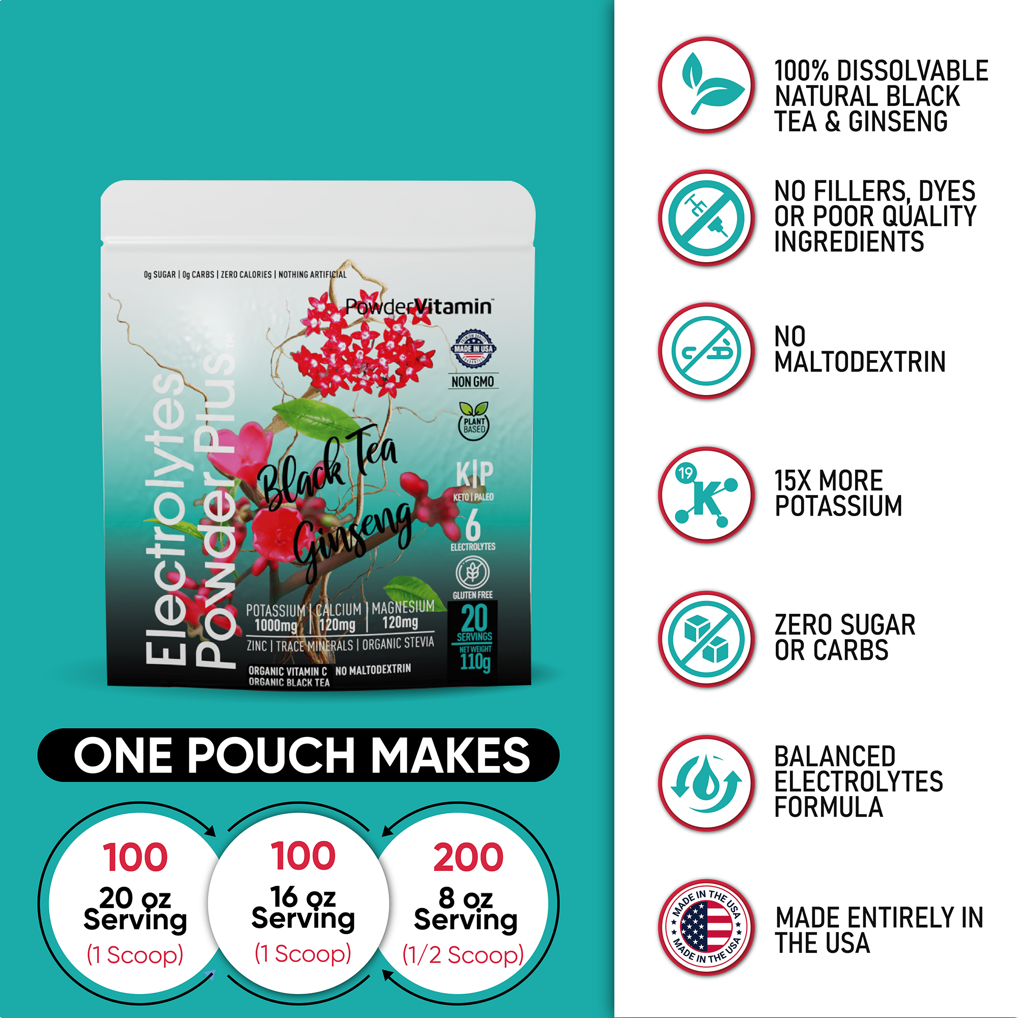 Black Tea Ginseng Electrolytes Powder Plus™ 100 Servings