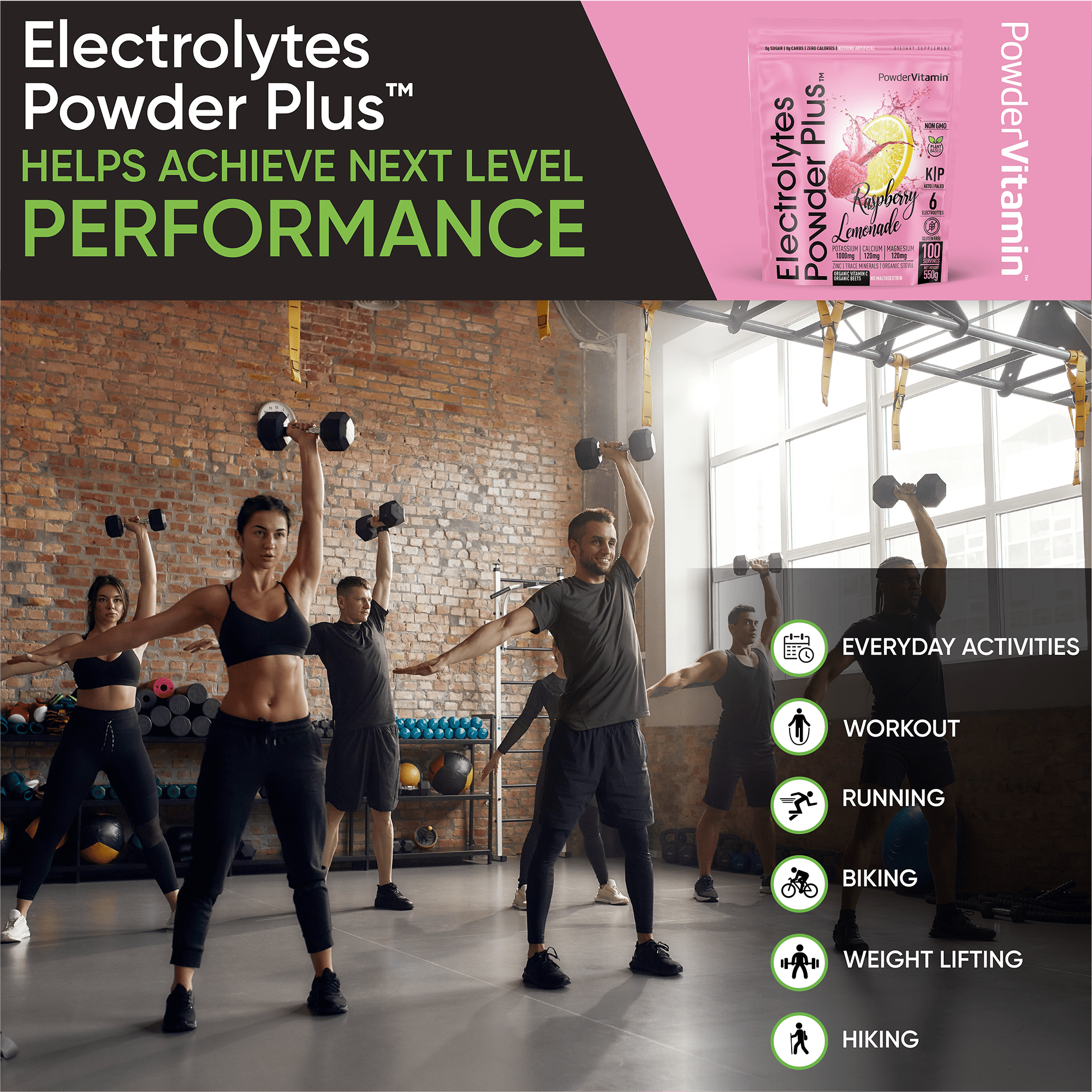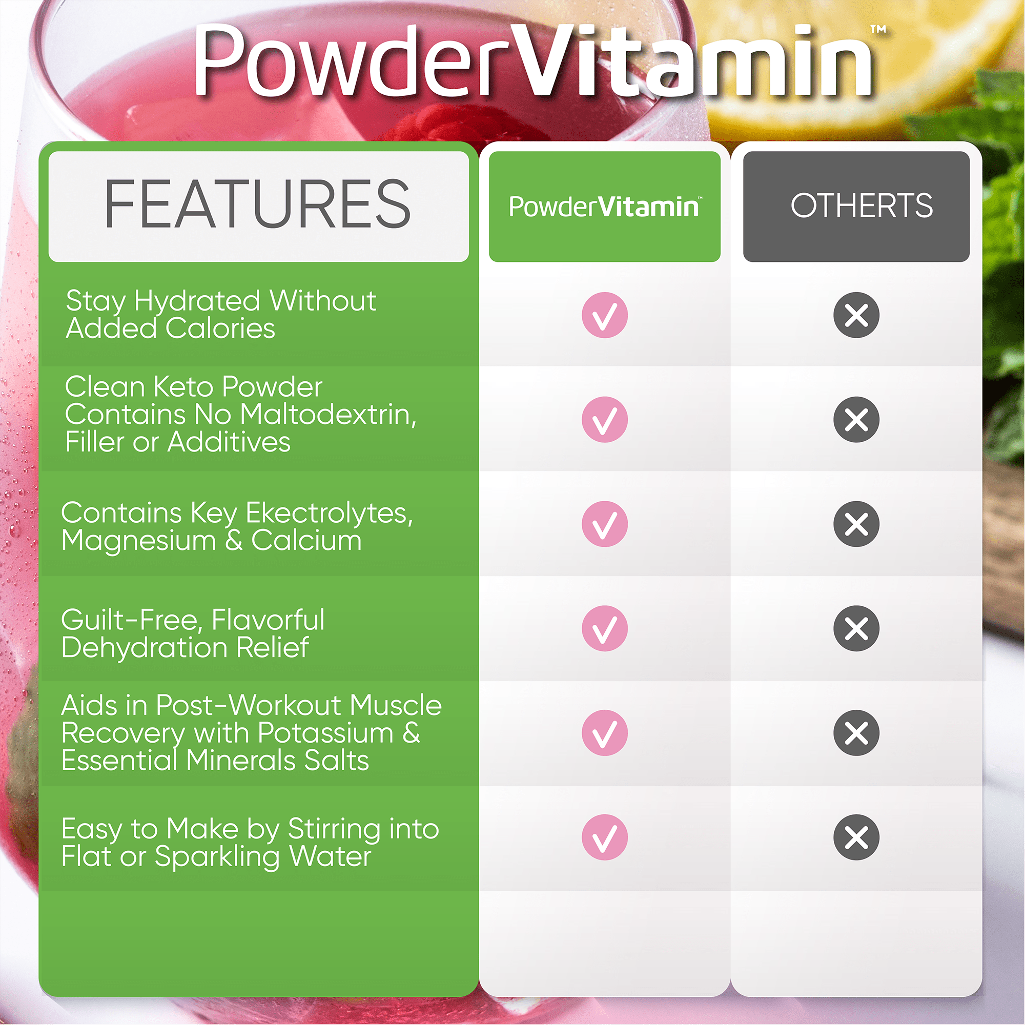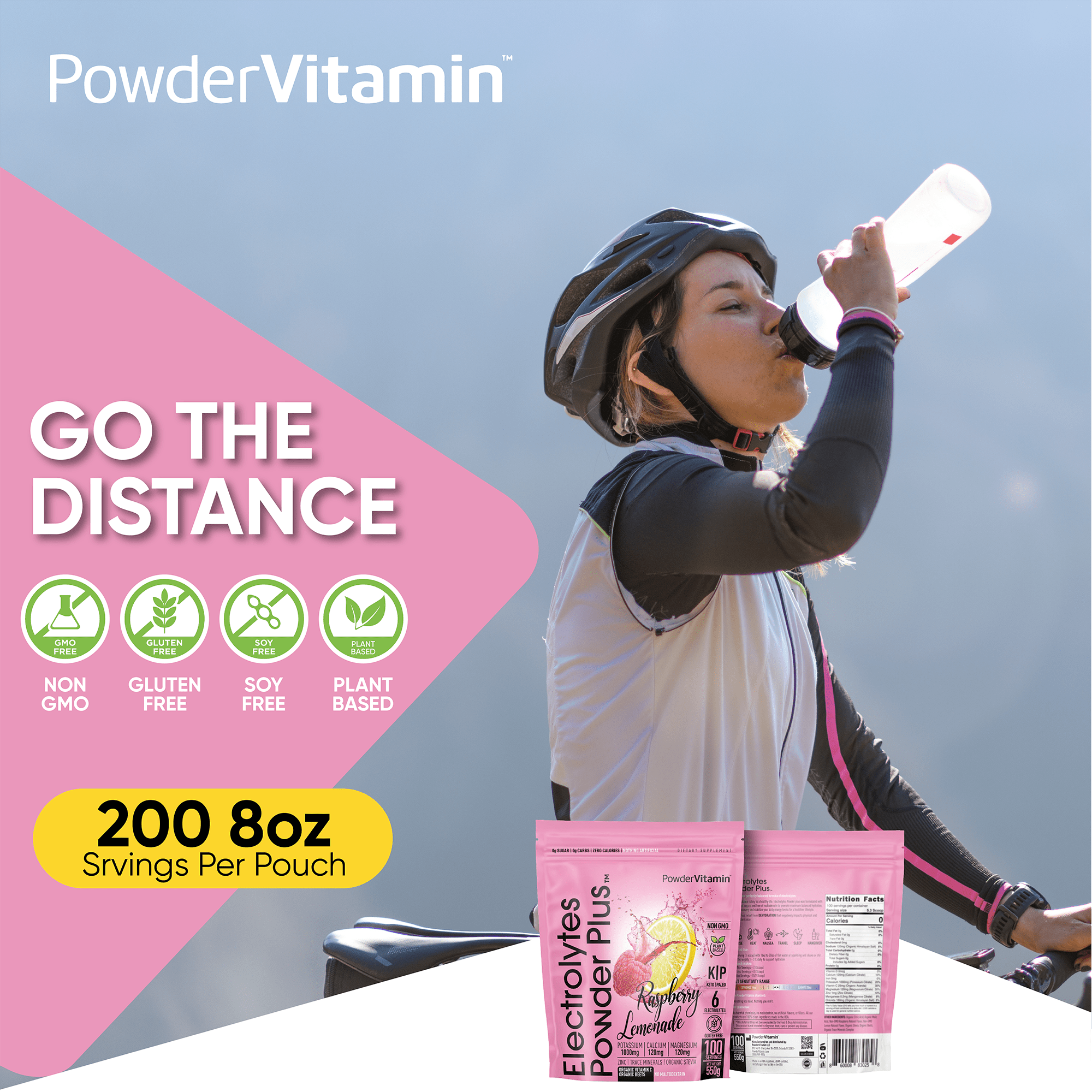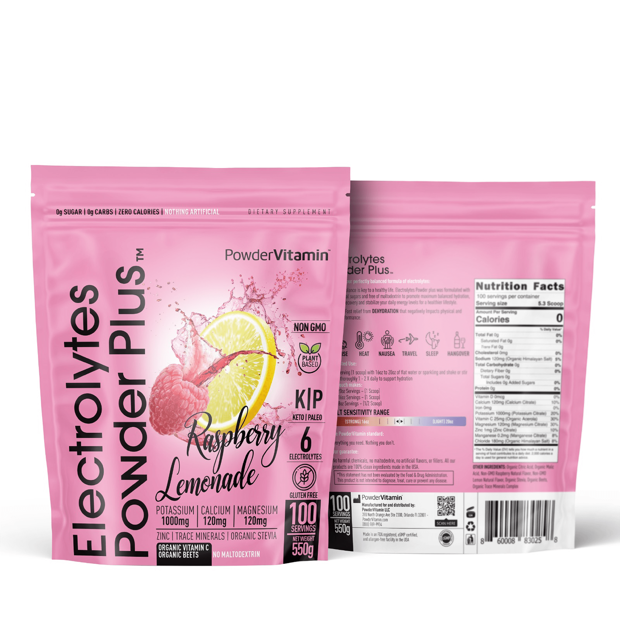 PowderVitamin Electrolytes Powder Plus™ is an advanced, balanced hydration drink with 6 essential electrolytes and trace minerals. Optimal hydration requires a good balance of electrolytes in the body. Essential electrolytes help you perform your best. The PowderVitamin Electrolytes Powder Plus™ formulation was created to support healthy hydration with real fruit flavors, plant-based colors, organic stevia leaf for sweetness. PowderVitamin Electrolytes Powder Plus™ has no sugar, calories or carbs so it’s compatible with any dietary plan.