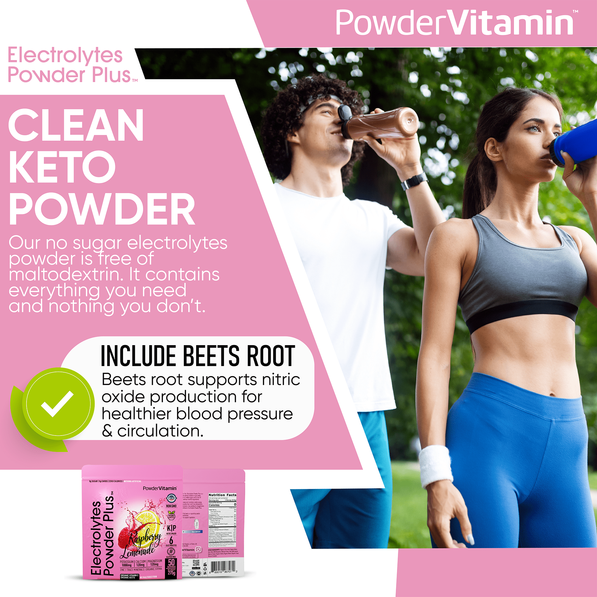 Keep Yourself Hydrated – Without added calories. PowderVitamin Sugar-Free Electrolyte Powder Plus aids in per workout & post workout muscle recovery with potassium and essential mineral salts.