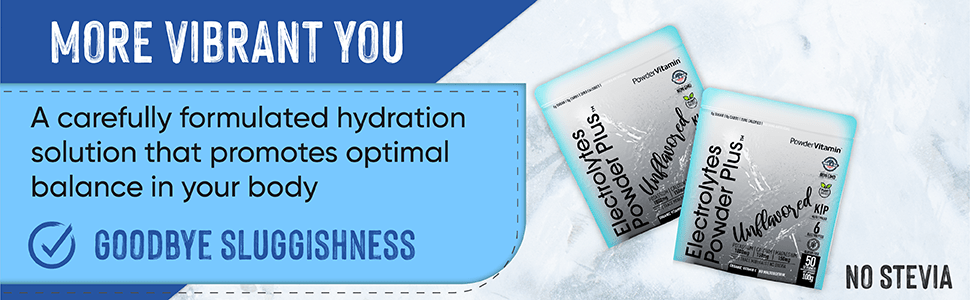 PowderVitamin Electrolytes Powder Plus™ is an advanced, balanced hydration drink with 6 essential electrolytes and trace minerals. Optimal hydration requires a good balance of electrolytes in the body. Essential electrolytes help you perform your best. The PowderVitamin Electrolytes Powder Plus™ formulation was created to support healthy hydration with real fruit flavors, plant-based colors, organic stevia leaf for sweetness. PowderVitamin Electrolytes Powder Plus™ has no sugar, calories or carbs so it’s compatible with any dietary plan.