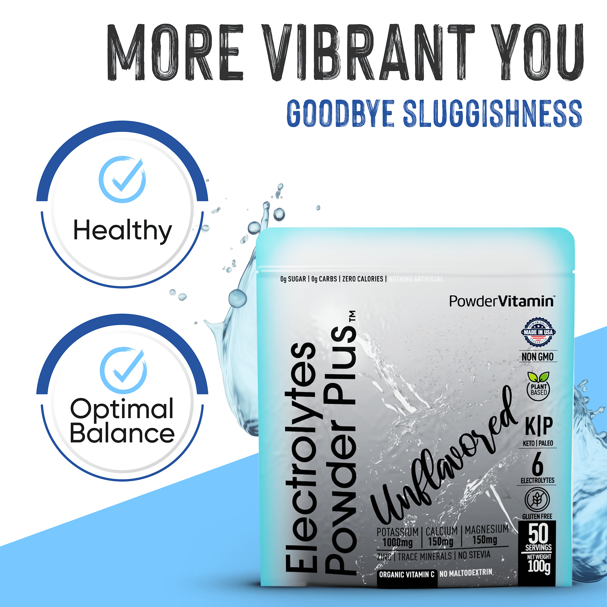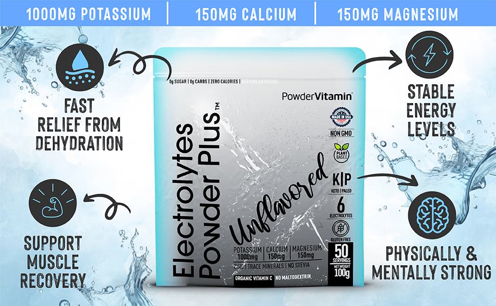 Keep Yourself Hydrated – Without added calories. PowderVitamin Sugar-Free Electrolyte Powder Plus aids in per workout & post workout muscle recovery with potassium and essential mineral salts.