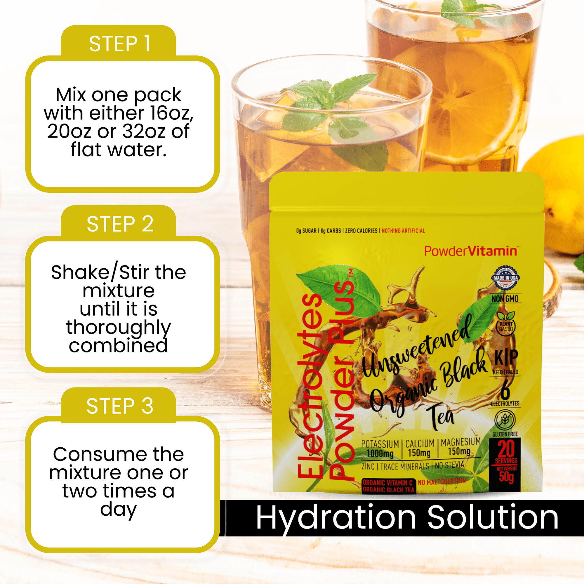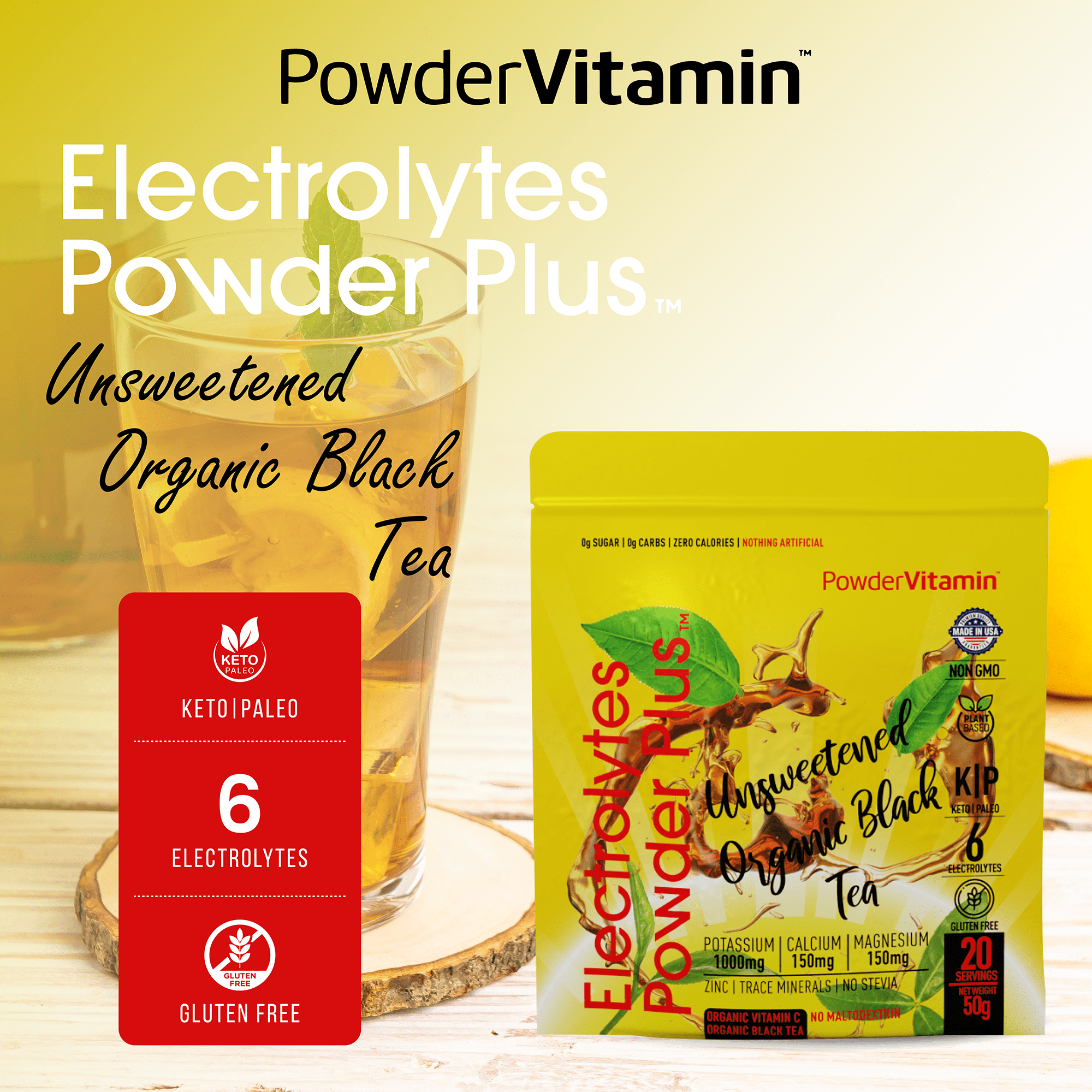 PowderVitamin Electrolytes Powder Plus™ is an advanced, balanced hydration drink with 6 essential electrolytes and trace minerals. Optimal hydration requires a good balance of electrolytes in the body. Essential electrolytes help you perform your best. The PowderVitamin Electrolytes Powder Plus™ formulation was created to support healthy hydration with real fruit flavors, plant-based colors, organic stevia leaf for sweetness. PowderVitamin Electrolytes Powder Plus™ has no sugar, calories or carbs so it’s compatible with any dietary plan.