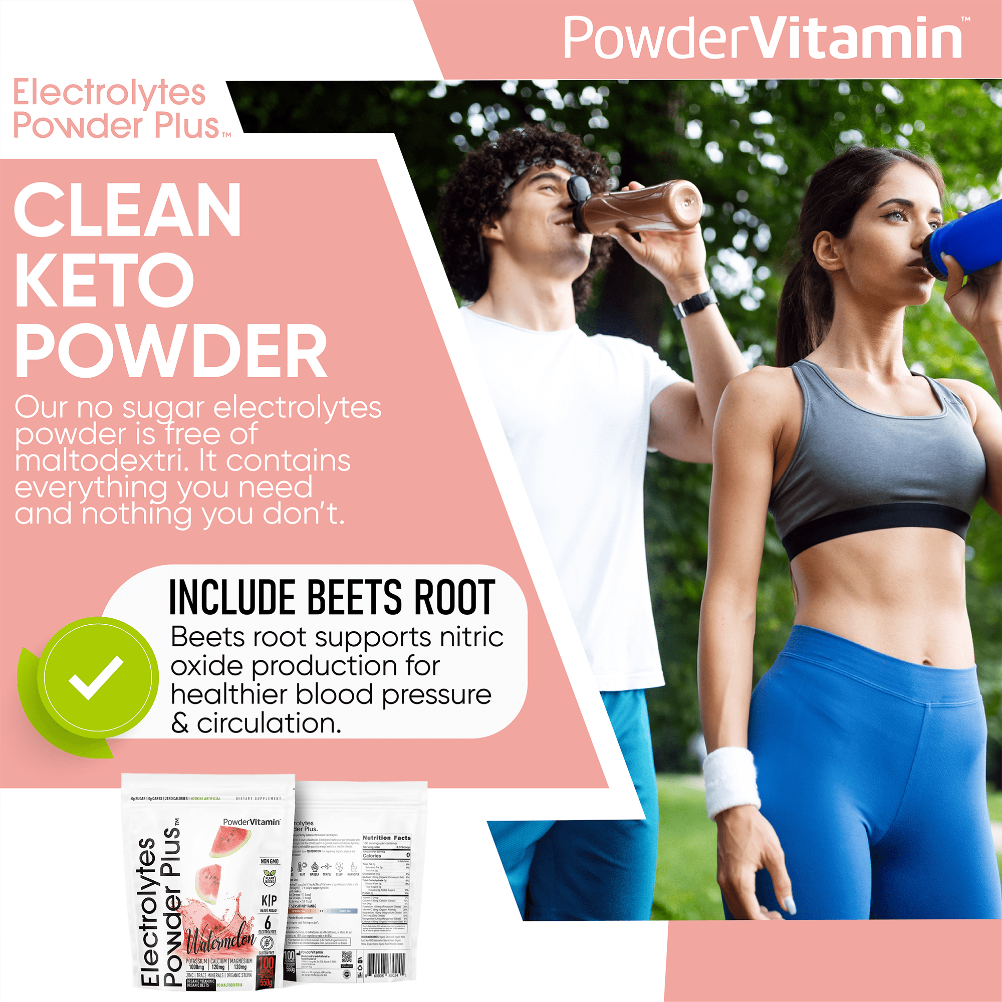 Elevate your hydration routine with Watermelon Electrolytes Powder Plus—where clean ingredients meet delicious performance.