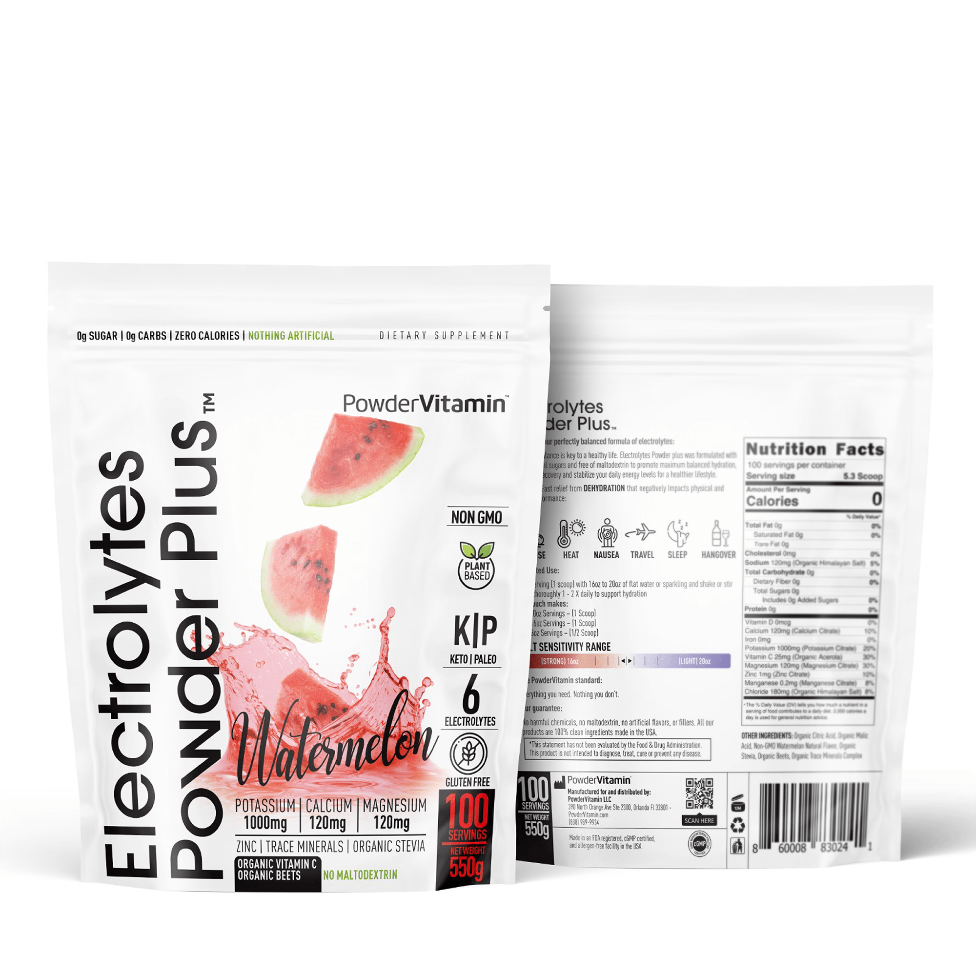 PowderVitamin Electrolytes Powder Plus™ is an advanced, balanced hydration drink with 6 essential electrolytes and trace minerals. Optimal hydration requires a good balance of electrolytes in the body. Essential electrolytes help you perform your best. The PowderVitamin Electrolytes Powder Plus™ formulation was created to support healthy hydration with real fruit flavors, plant-based colors, organic stevia leaf for sweetness. PowderVitamin Electrolytes Powder Plus™ has no sugar, calories or carbs so it’s compatible with any dietary plan.